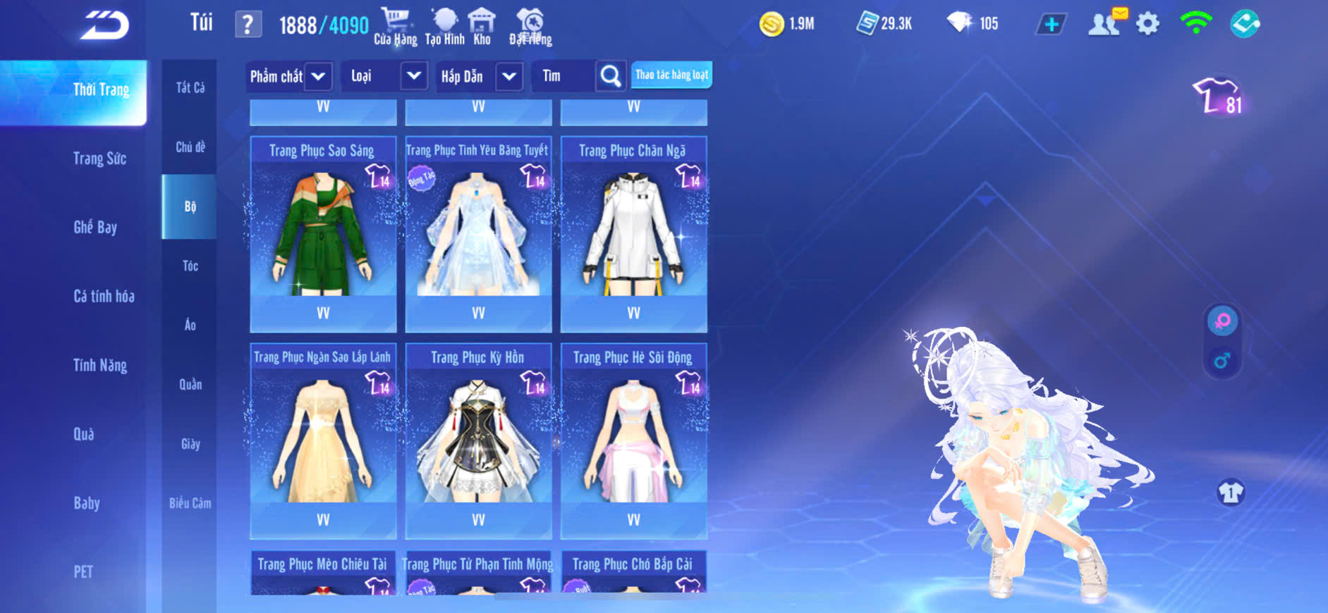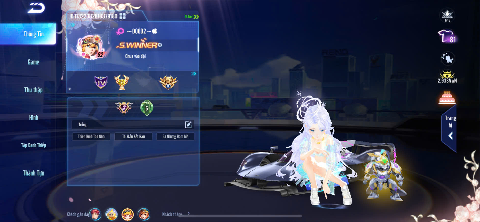 9MP NAM+4MP NỮ,XE T1 SKIN+S7 SKIN+S8 SKIN lv5+S9+S10 SKIN,PÉT CƯỠI,GHẾ BAY NHIỀU,ĐỒ NAM NHIỀU,ZING THAY FULL TT..