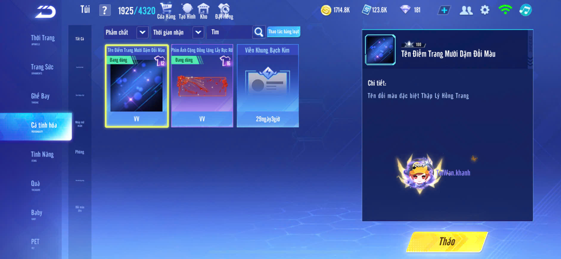 Hình ảnh chi tiết của tài khoản