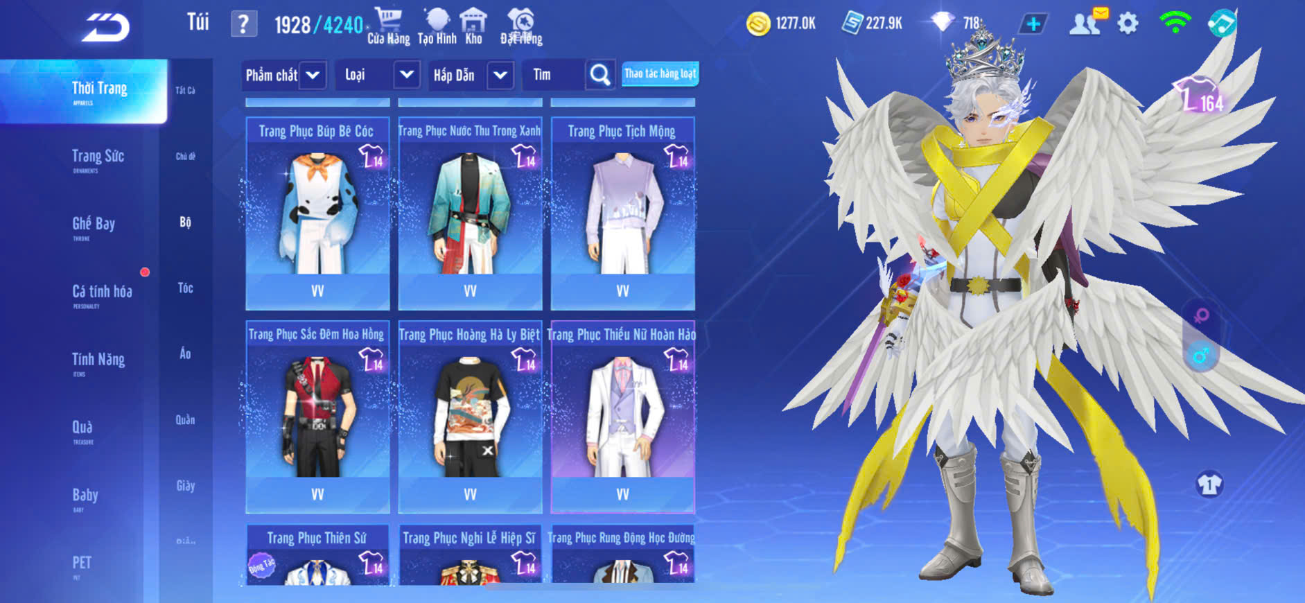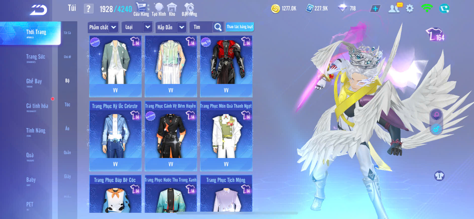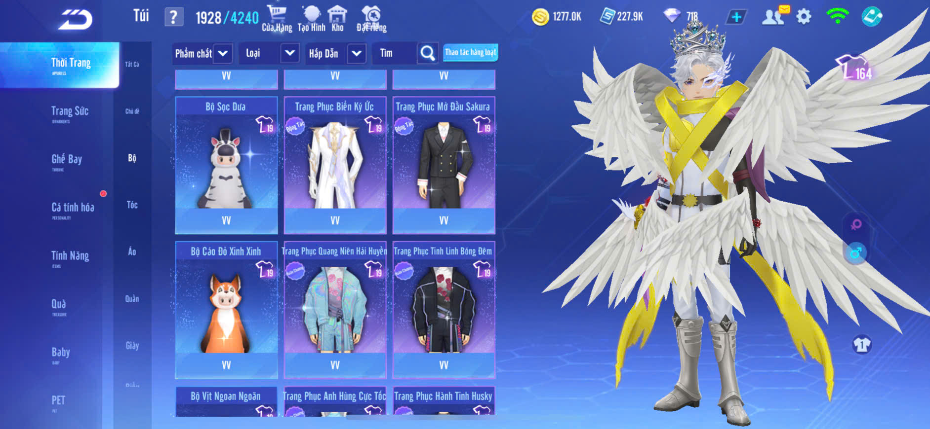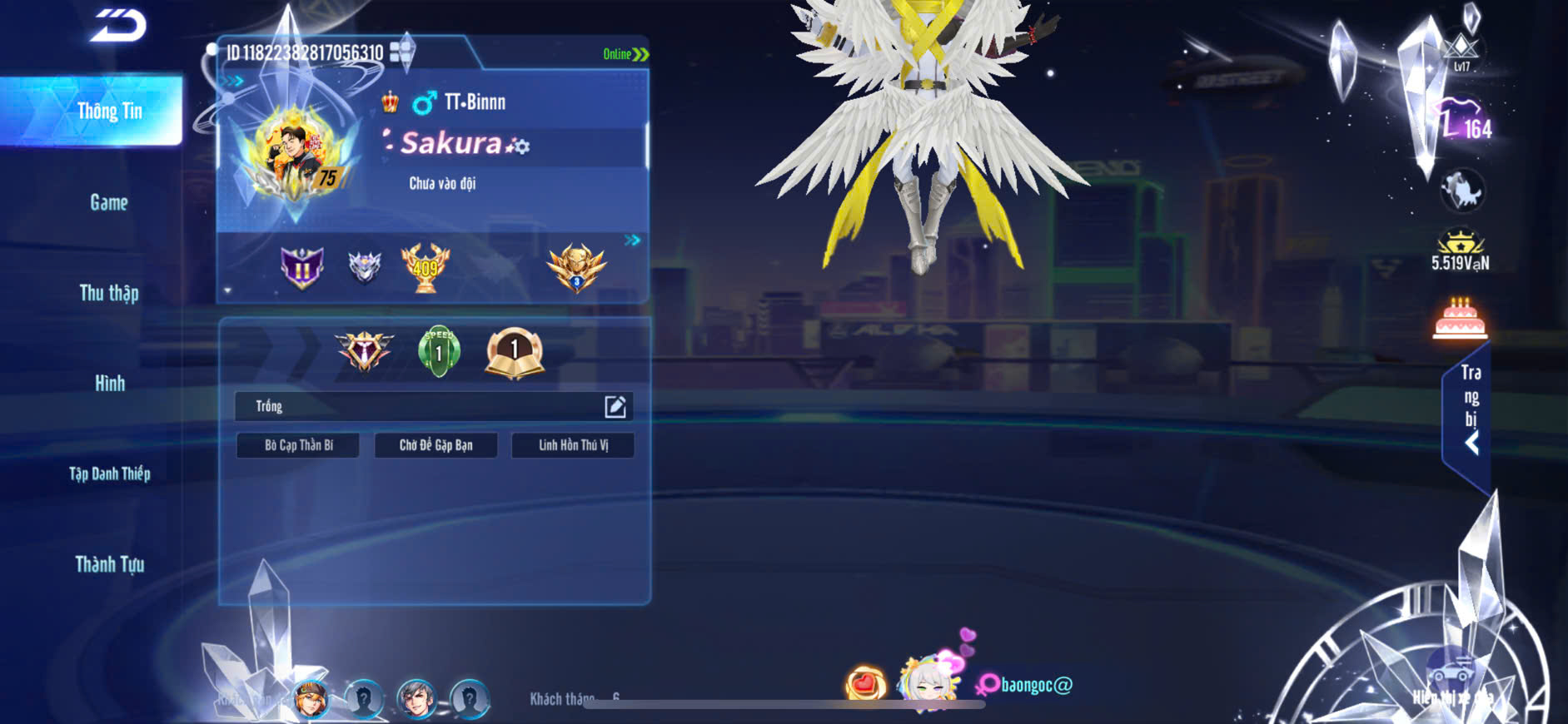 1 ẢO SINH+4MP NỮ,1 ẢO SINH+2MP NAM,T1+T2+T3 VÀI SKIN ĐẸP,S7+S8+S9+10+HỔ LỬA,PÉT CƯỠI 3 CON,ZING THAY FULL TT..